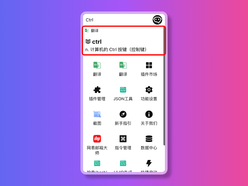 在任意界面,按一次 Ctrl 后可以唤醒快捷面板,从而实现快速翻译。
