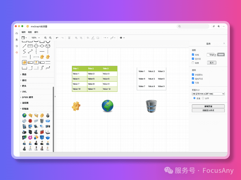 通过扩展插件的安装,你可以将 FocusAny 当成一个超级文件编辑器。软件会自动关联 .fadata 文件,通过各种插件的支持,支持多种文件格式的编辑。 一些常见的文件编辑器: